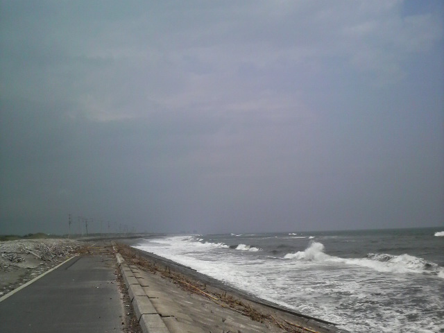 九十九里浜の波は少々荒れ模様。。。