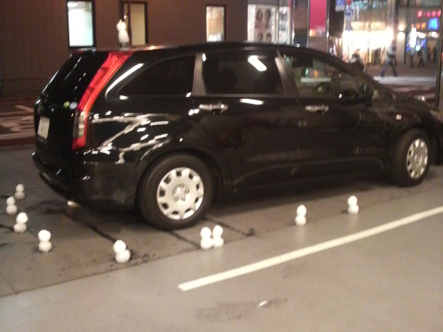 東京のわずかに残った雪で「雪だるま